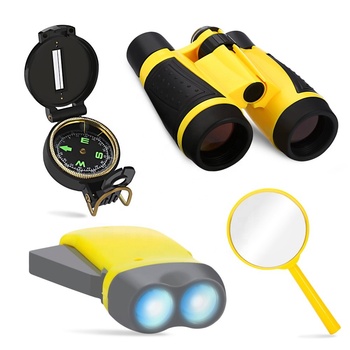 Juego de aventuras para niños al aire libre que contiene binoculares para niños Lensatic brújula linterna y silbato