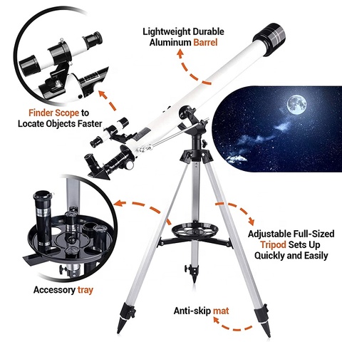 子供用,月と惑星70mm開口屈折望遠鏡天文スマートフォンアダプター付き