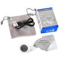 60X ชาร์จ USB ปรับความสว่างได้3ระดับแว่นขยายเครื่องประดับพร้อมไฟ LED 9ดวง